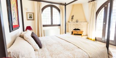 Master double bedroom with chimney and in room bath and full shower room